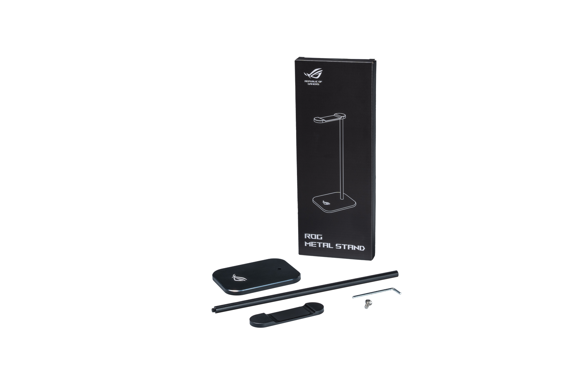 ASUS ROG Metal Headset Stand provides a dedicated spot to store your gaming headphone and keeping your gaming area organized. Scratch-resistant metal structure with rubber feet provides a premium feel With a stand height of 27.5 cm, ROG Metal Stand provides enough clearance for almost any headset Dimension Product (mm) 110 x 84 x 275 mm Color?ábox (mm) 285 x 108 x 20 mm Weight Product 250g Color?ábox with product 311g Material Aluminium structure + rubber pad Package Contents ROG metal stand