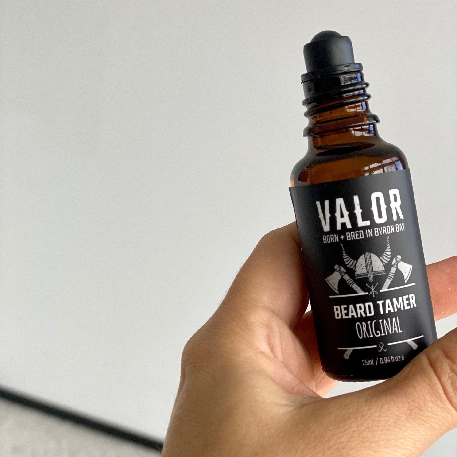 Tame wild whiskers like a pro! Valor Beard Tamer Original Valor Scent (formally known as Beard Balm) works to condition and nourish both the hair shaft and the skin beneath. Giving you a gloriously soft, shiny beard and healthy skin. Without the oily residue!