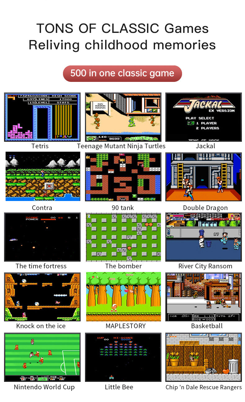 Relive your childhood memories with this 500-in-1 retro handheld game console. Featuring a vibrant display, classic games,it is the perfect gift for gamers of all ages.