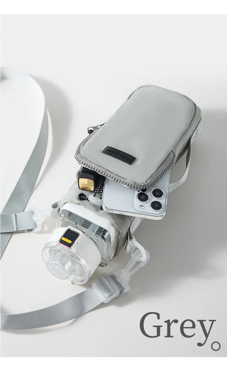 Grey Portable Outdoor Water Bottle Holder Bag with Adjustable Shoulder Strap, Nylon Waterproof Material, 121g Lightweight, 23cm Height for Travel and Hiking(Water Cup Not Included)