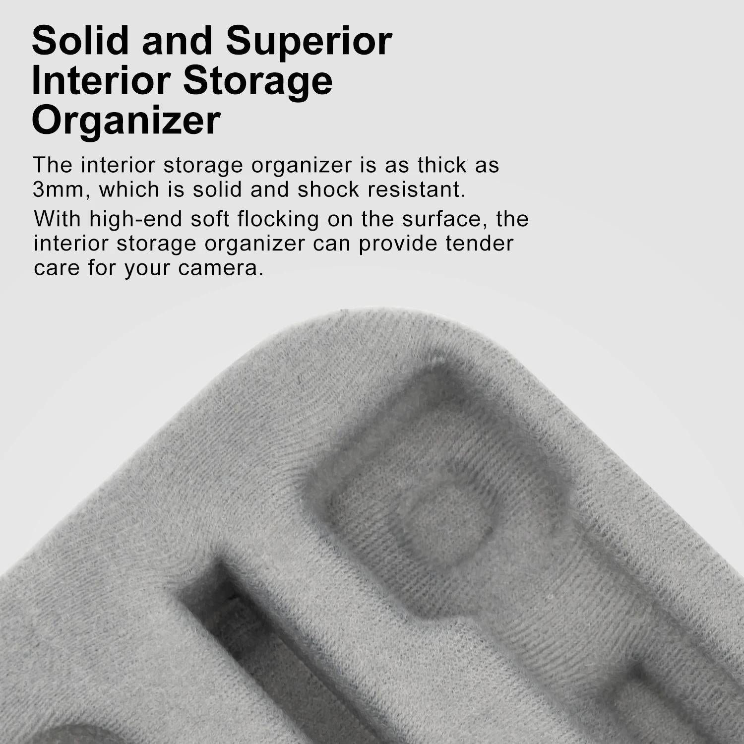 • Removable inner tray, after taking out the inner tray, it can be compatible with GoPro Hero, GoPro MAX, Insta360 X3 / ONE RS / ONE X2 / GO2, DJI Action and so on