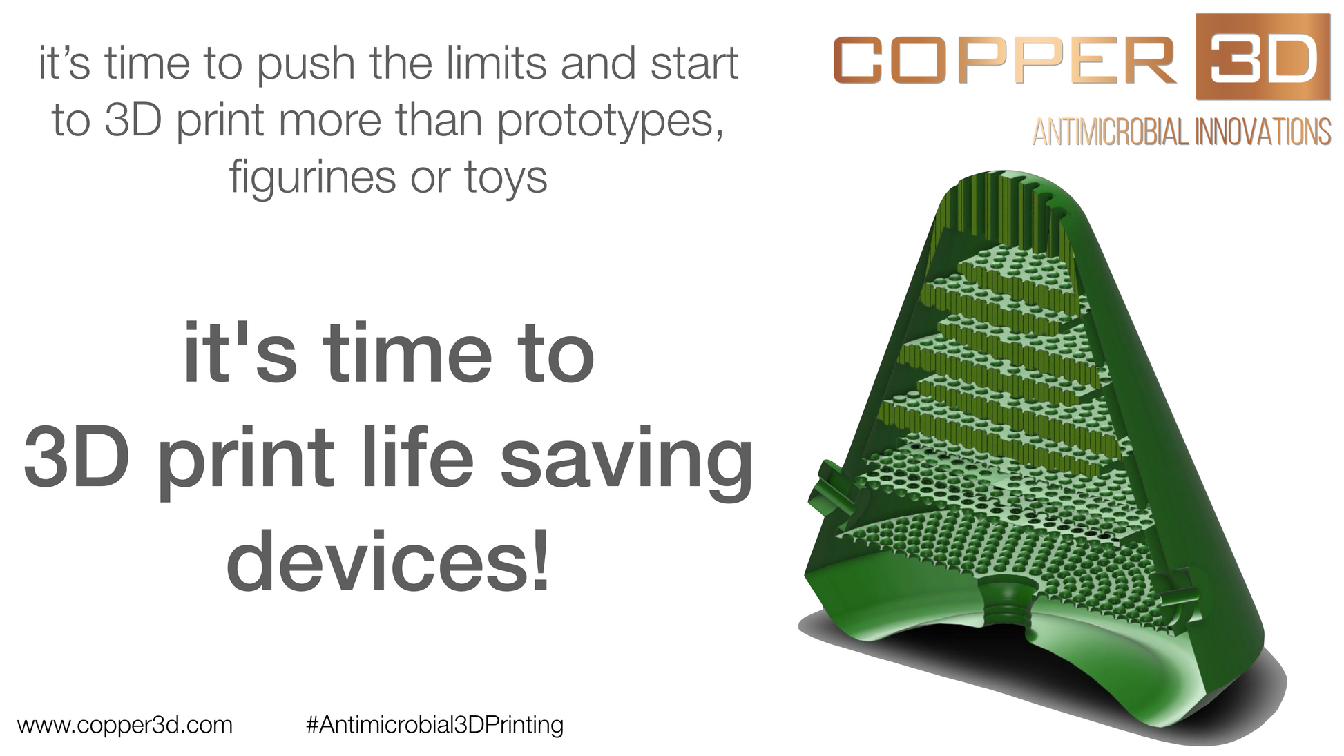 Copper 3D PLActive is an innovative Nanocomposite 3D printer filament developed with proven high-quality EasyFil PLA compound and a patented, scientifically validated and highly effective Nano-Copper additive. PLActive filament is FDA registered and eliminates more than 99.99% of fungi, viruses, bacteria and a wide range of microorganisms.