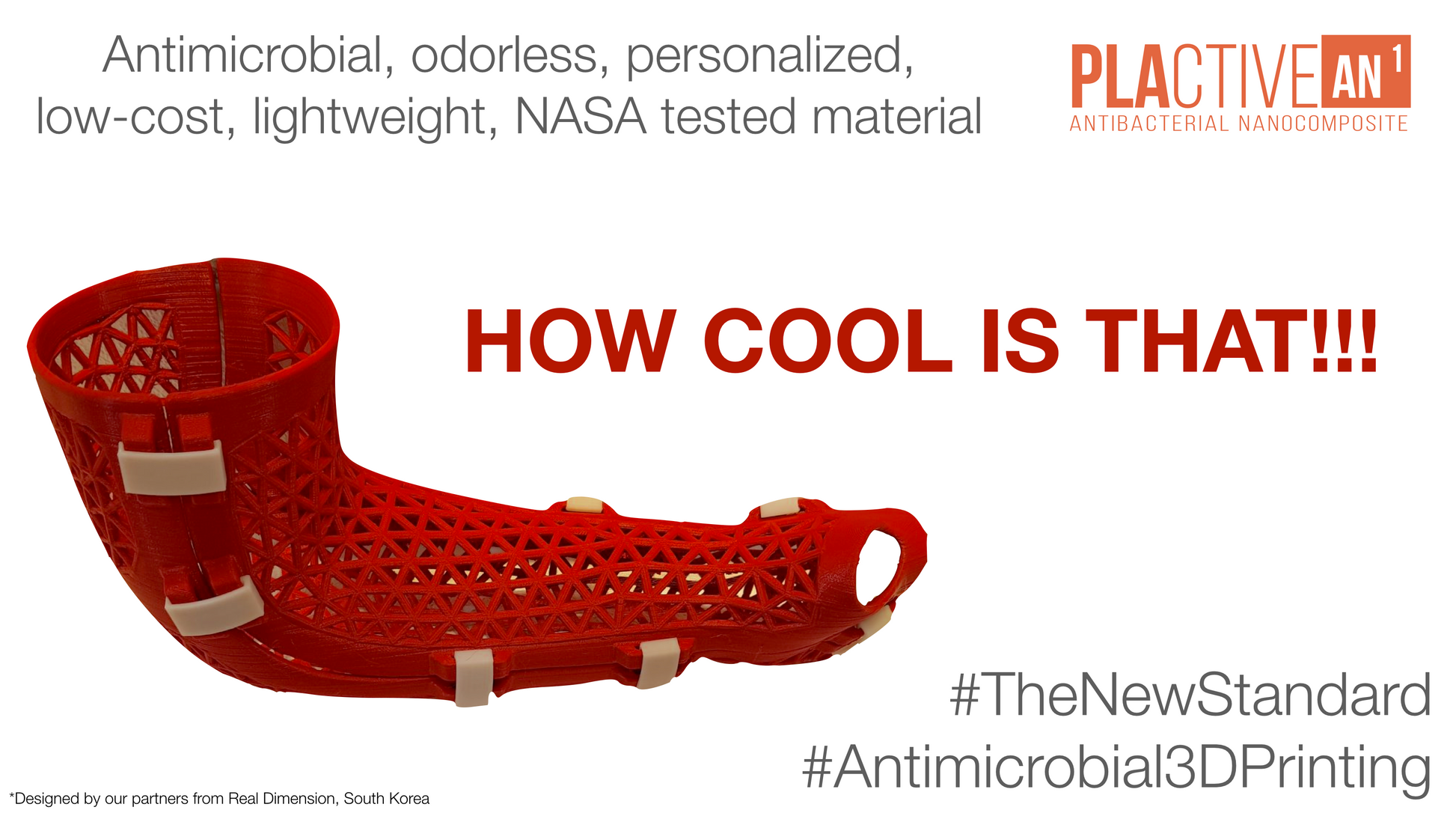 Copper 3D PLActive is an innovative Nanocomposite 3D printer filament developed with proven high-quality EasyFil PLA compound and a patented, scientifically validated and highly effective Nano-Copper additive. PLActive filament is FDA registered and eliminates more than 99.99% of fungi, viruses, bacteria and a wide range of microorganisms.