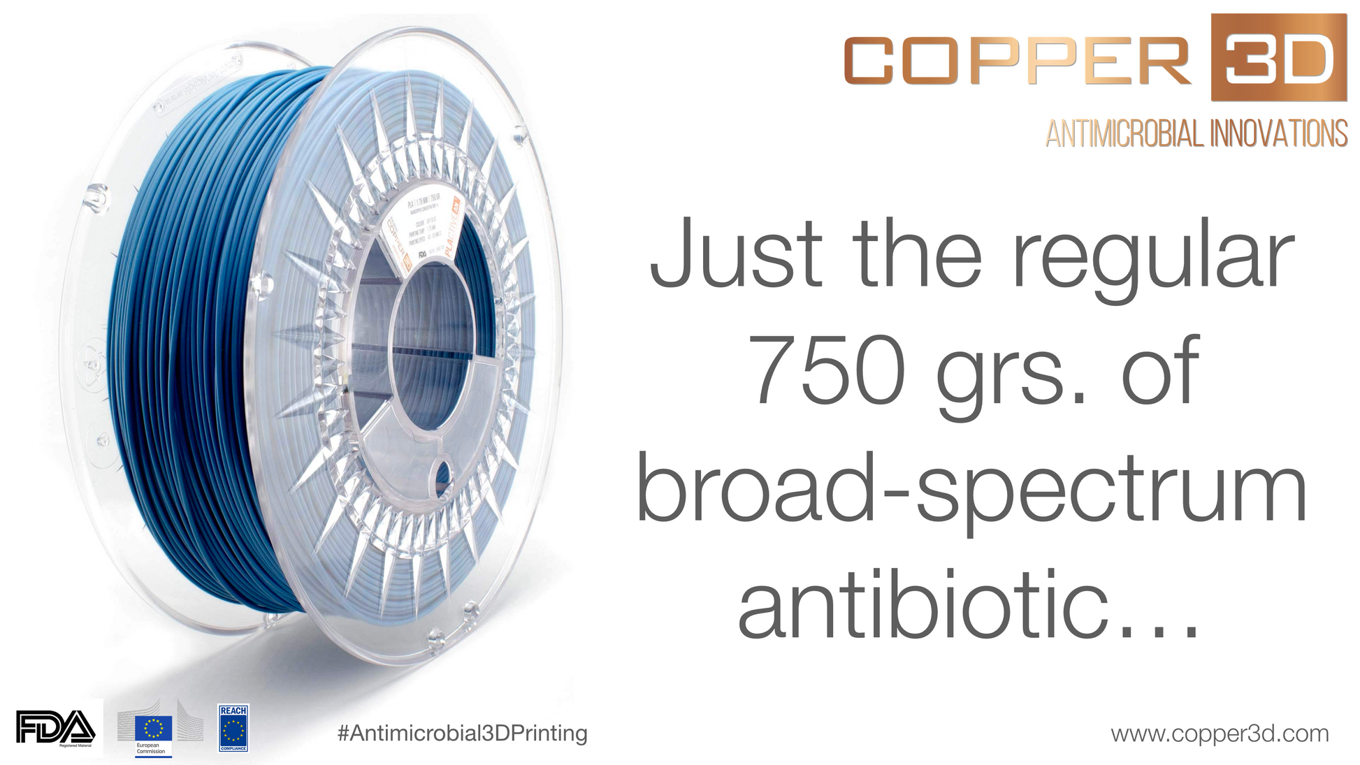 Copper 3D PLActive is an innovative Nanocomposite 3D printer filament developed with proven high-quality EasyFil PLA compound and a patented, scientifically validated and highly effective Nano-Copper additive. PLActive filament is FDA registered and eliminates more than 99.99% of fungi, viruses, bacteria and a wide range of microorganisms.