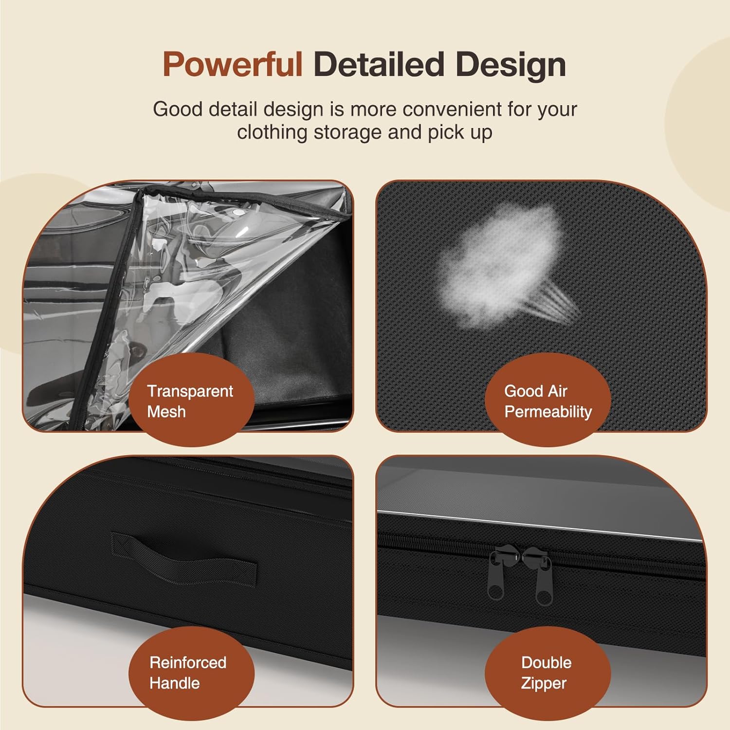 - DURABLE & STURDY DESIGN WITH DUSTPROOF LID: Built with a strong metal frame and high-quality Oxford fabric, this under-bed storage container is designed for durability and long-lasting use. The transparent PVC lid with dual zippers keeps your belongings safe from dust and moisture, while allowing easy identification of stored items.